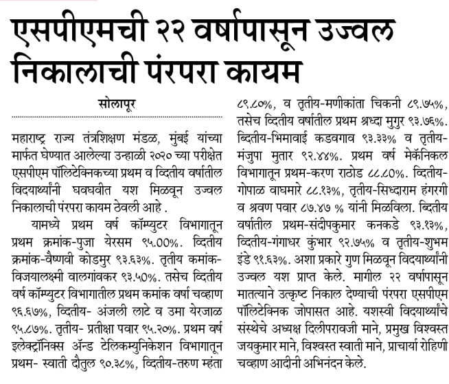 Shikshan Prasarak Mandal's Polytechnic Kumathe, Solapur